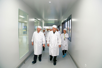 王國(guó)海委員一行先后參觀了公司恒廣路總部行政辦公樓、研究院、D106及無(wú)菌制劑車間、倉(cāng)儲(chǔ)中心等,重點(diǎn)了解各實(shí)驗(yàn)室、車間的儀器設(shè)備配置和使用情況,以及公司現(xiàn)有平臺(tái)的規(guī)劃與布局??疾靾F(tuán)一行對(duì)于公司廠區(qū)園林化、辦公開(kāi)放化、設(shè)備現(xiàn)代化、布局體系化的發(fā)展現(xiàn)狀給與了充分肯定。