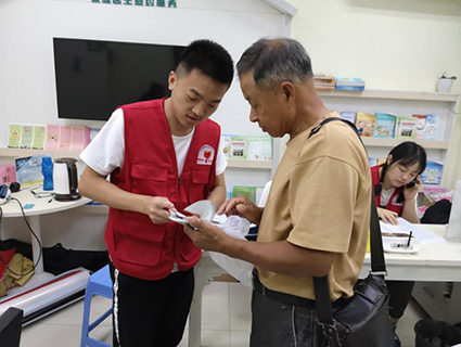 “南京隊(duì)”由南京正大天晴慢病事務(wù)部安排對(duì)接,前往小市、仙林社區(qū)衛(wèi)生服務(wù)中心進(jìn)行走訪和志愿服務(wù),研究慢性病在基層社區(qū)醫(yī)院的管理服務(wù)情況,通過(guò)與醫(yī)患的近距離溝通、參與慢病知識(shí)患教、體驗(yàn)基本健康診療等多種形式,切實(shí)感受慢性病患者分級(jí)管理模式。