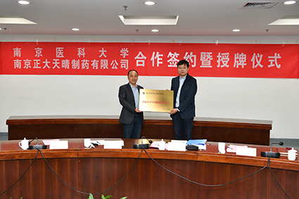 在和諧融洽的氛圍中,呂衛(wèi)東總監(jiān)與韓峰院長(zhǎng)正式簽訂了戰(zhàn)略合作協(xié)議,設(shè)立南京正大天晴為南醫(yī)大藥學(xué)院“臨床藥學(xué)學(xué)科聯(lián)盟”的共建單位、“南京醫(yī)科大學(xué)藥學(xué)院本科生的科研創(chuàng)新及社會(huì)服務(wù)實(shí)踐基地”,授牌儀式隨即舉行。