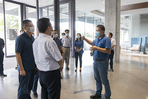 8月6日,南京經(jīng)濟(jì)技術(shù)開發(fā)區(qū)管委會主任孫愛軍一行來到公司恒廣路總部進(jìn)行調(diào)研,公司田舟山總裁、王寬起資深副總裁、張揚(yáng)清副總裁等領(lǐng)導(dǎo)在大廳迎接。