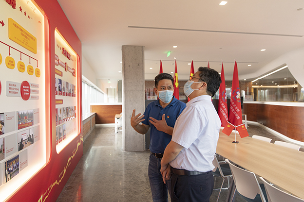 孫愛軍主任一行在田舟山總裁的陪同下,饒有興致的參觀了總部辦公樓、黨建培訓(xùn)中心和研究院實(shí)驗(yàn)室,對公司在黨建工作、企業(yè)文化、產(chǎn)品研發(fā)等取得的成績給與積極的肯定。在隨后的座談會上,田舟山總裁從公司的疫情防控工作、企業(yè)經(jīng)營發(fā)展和項(xiàng)目建設(shè)規(guī)劃上做了詳細(xì)的匯報(bào),他指出,南京正大天晴發(fā)展到今天,離不開經(jīng)開區(qū)各級部門和領(lǐng)導(dǎo)的關(guān)懷和支持,離不開經(jīng)開區(qū)良好的投資氛圍和優(yōu)秀的企業(yè)服務(wù)意識,公司在目前嚴(yán)峻的疫情防控形勢下,將疫情防控提升至公司壓倒一切的首要工作!堅(jiān)決貫徹落實(shí)省市區(qū)與省農(nóng)墾黨委、各級主管部門防疫最新規(guī)定與要求,緊而又緊、嚴(yán)而又嚴(yán)、實(shí)而又實(shí),以高度的政治自覺堅(jiān)決壓實(shí)“四方責(zé)任”,堅(jiān)決打贏抗疫阻擊戰(zhàn)。