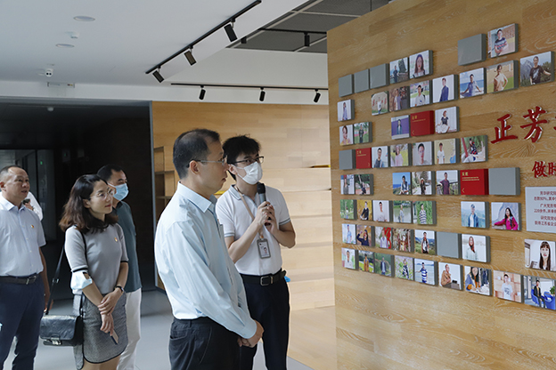 張光鵬副校長一行參觀了公司黨建展廳、黨員活動室、研究院等辦公區(qū)域。張翎副總裁詳細(xì)介紹公司在黨建主題教育、黨員示范崗、黨史學(xué)習(xí)活動、科研創(chuàng)新等方面的具體措施。