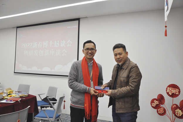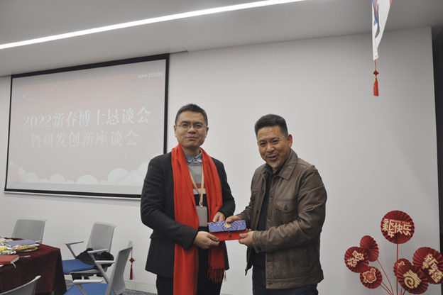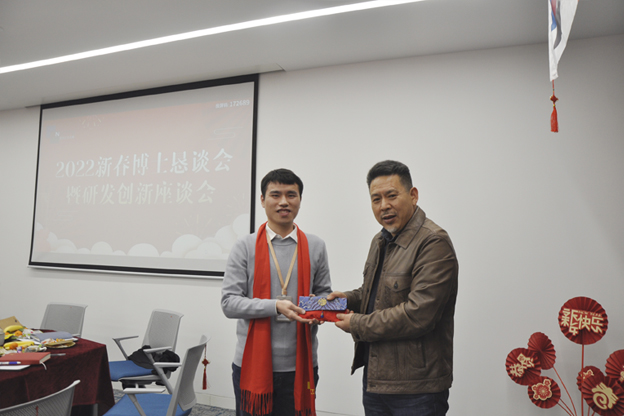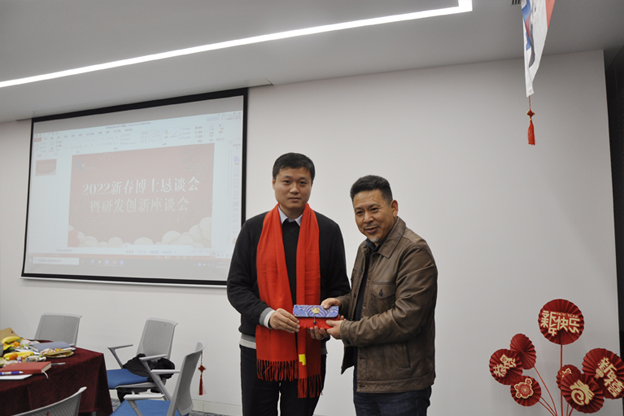 座談會(huì)后,田舟山總裁還向博士們派發(fā)了“新年紅包”并合影留念。