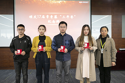 公司副總經(jīng)理張翎、總經(jīng)理助理徐丹、生產(chǎn)技術(shù)總監(jiān)原元、生產(chǎn)技術(shù)總監(jiān)朱文華、副總經(jīng)理助理姜忠軍、認(rèn)證管理部經(jīng)理趙紅受邀出席儀式,并為常青藤員工代表頒發(fā)轉(zhuǎn)正證書、獎(jiǎng)狀及“一年青”、“三年香”、“6年陳”紀(jì)念品。