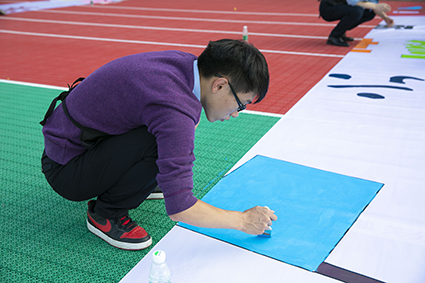 當(dāng)日下午,全體常青藤員工來(lái)到籃球場(chǎng),分為10個(gè)小隊(duì)開始拓展活動(dòng)。他們用手中的畫筆在各自的紙面上創(chuàng)作,共同拼合成了一幅色彩斑斕“常青藤巨畫”,正如他們所擁有的青春,是那么充滿詩(shī)意而不缺乏拼搏的激情。
