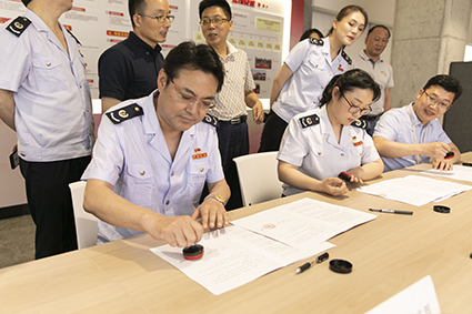 在全體人員的注視下,南京市稅務(wù)局第二稽查局檢查二科支部、辦公室支部,與南京正大天晴機關(guān)黨支部、研究院第二支部正式結(jié)對,各支部書記或代表共同簽署了《支部黨建共建合作協(xié)議書》。今后,雙方將認真按照協(xié)議約定,充分利用各自的資源優(yōu)勢,積極開展形式多樣的支部共建活動。