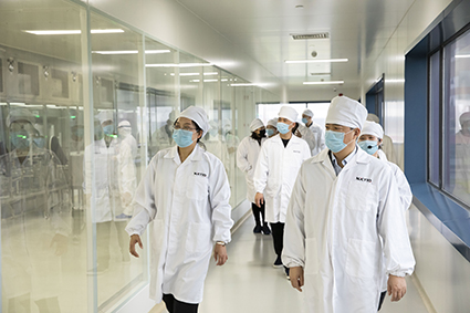 劉小斌副書記一行先后參觀了公司D106車間、無菌制劑車間、研究院等,實地查看公司產(chǎn)能規(guī)模及配套硬件設(shè)備、研發(fā)平臺建設(shè)及人員配置等情況,充分肯定了公司在現(xiàn)有體量下的研發(fā)智造實力,并對園區(qū)內(nèi)別出心裁的設(shè)計元素表示贊賞。