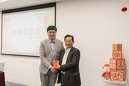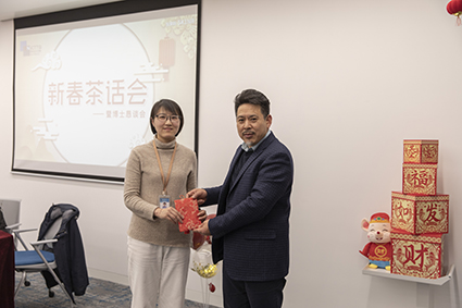 講話結(jié)束,諸位博士陸續(xù)從謝炳董事長(zhǎng)和田舟山總經(jīng)理的手中接過(guò)“新年紅包”并合影留念。